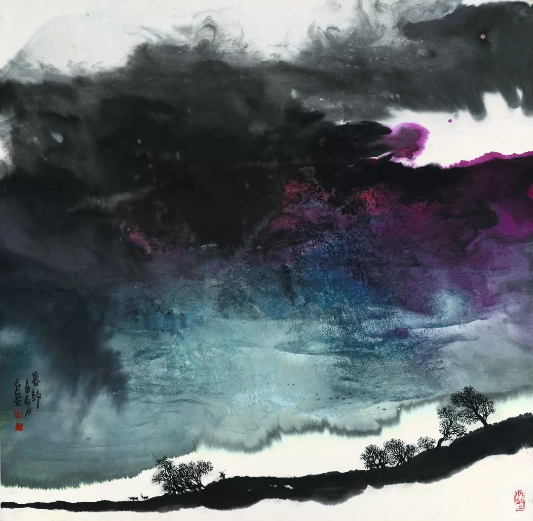 李晓轩《暮归》 69X69cm 纸本水墨