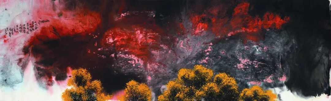 要知道,一种独诣的旨趣和精神追求要远比只知深陷在笔墨技巧的泥潭里,一辈子写、画别人的心思有价值的多。 如果要我简单表达晓轩先生的作品给我的强烈感觉,我就想说几个不吝,不吝于墨,不吝于色,不吝于水,不吝于黑,更不吝于白。仰仗他娴熟的笔墨功夫、精巧的艺术才思,他纵情挥洒、自由驰骋,当用水处,当用墨处,当用色处,抑或当尽黑处、留白处,无不造其极、尽其致,这是对自己艺术表现能力的高度自信,所以他不吝,不吝却又能“发乎情、止乎理(礼)”,控制的恰到好处,收拾整顿的起来。