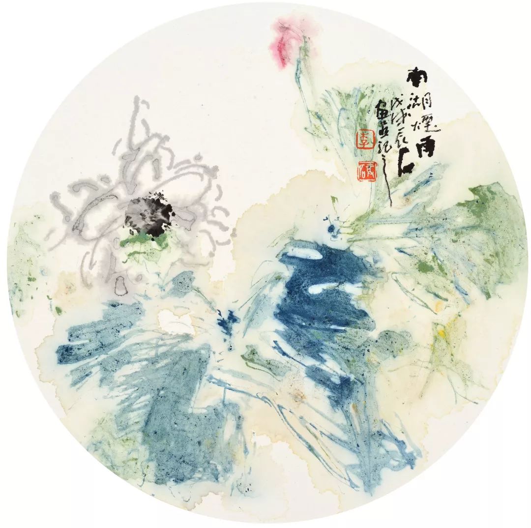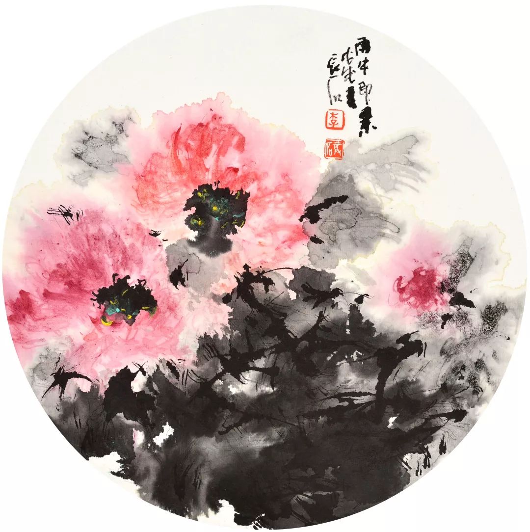 历来有大成就的花鸟画家亦多有借禅的梯航以臻艺术妙境的,晓轩先生亦然。他习画习禅,可谓丁慧双修,以艺术的灵动启发禅思,用观禅的慧心滋养艺术,唯如此,他的绘画上才能如今这般韵味隽永,妙趣盎然。其实,相较于晓轩先生的援禅入画,我更看重他强烈的时代形式,行笔的激情悸动;构图的纵横捭阖;点线面的组合排列;水、色、墨的大胆泼洒无一不闪现着现代音乐般的强烈节奏感。