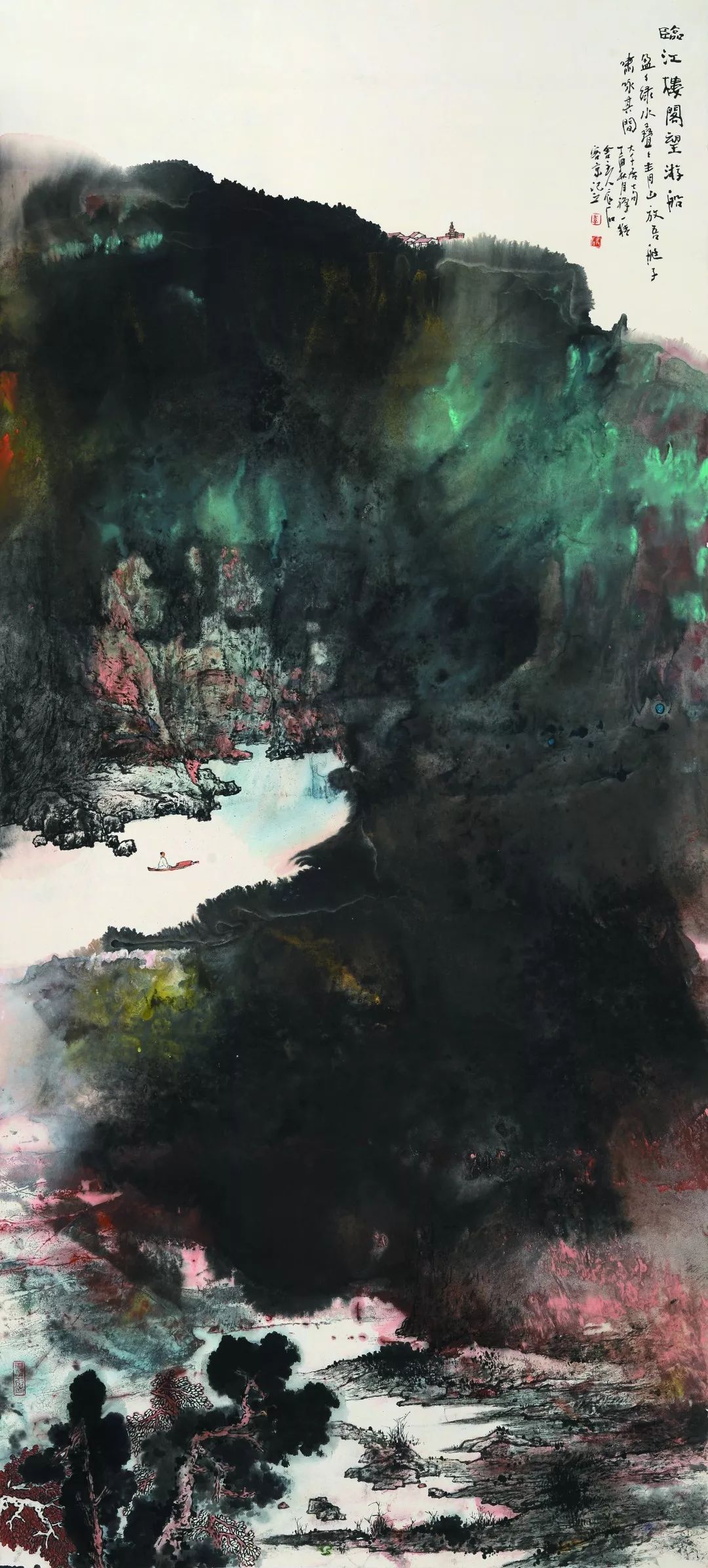 李晓轩 《临江楼阁望游船》 138X70cm 纸本水墨