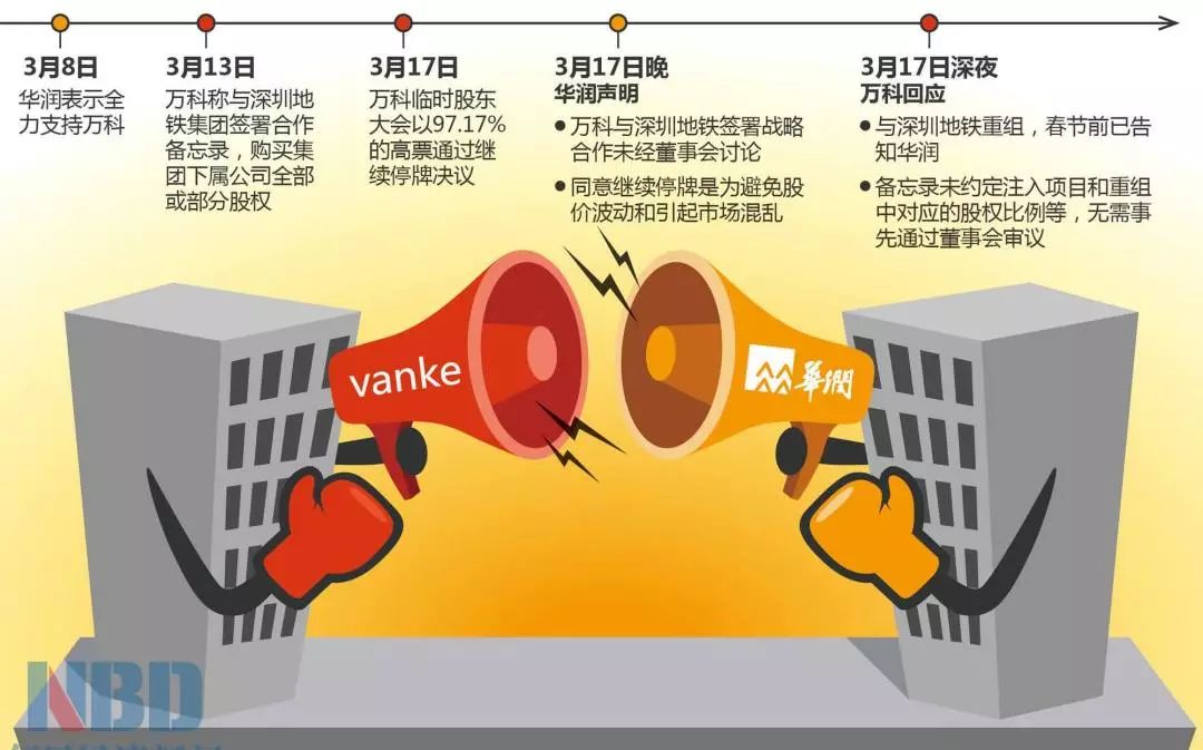 结果就是两次超越原大老板华润的股份,终于变成万科第一大股东,这下搞得万科无奈之下只好停牌,关起门来想办法。