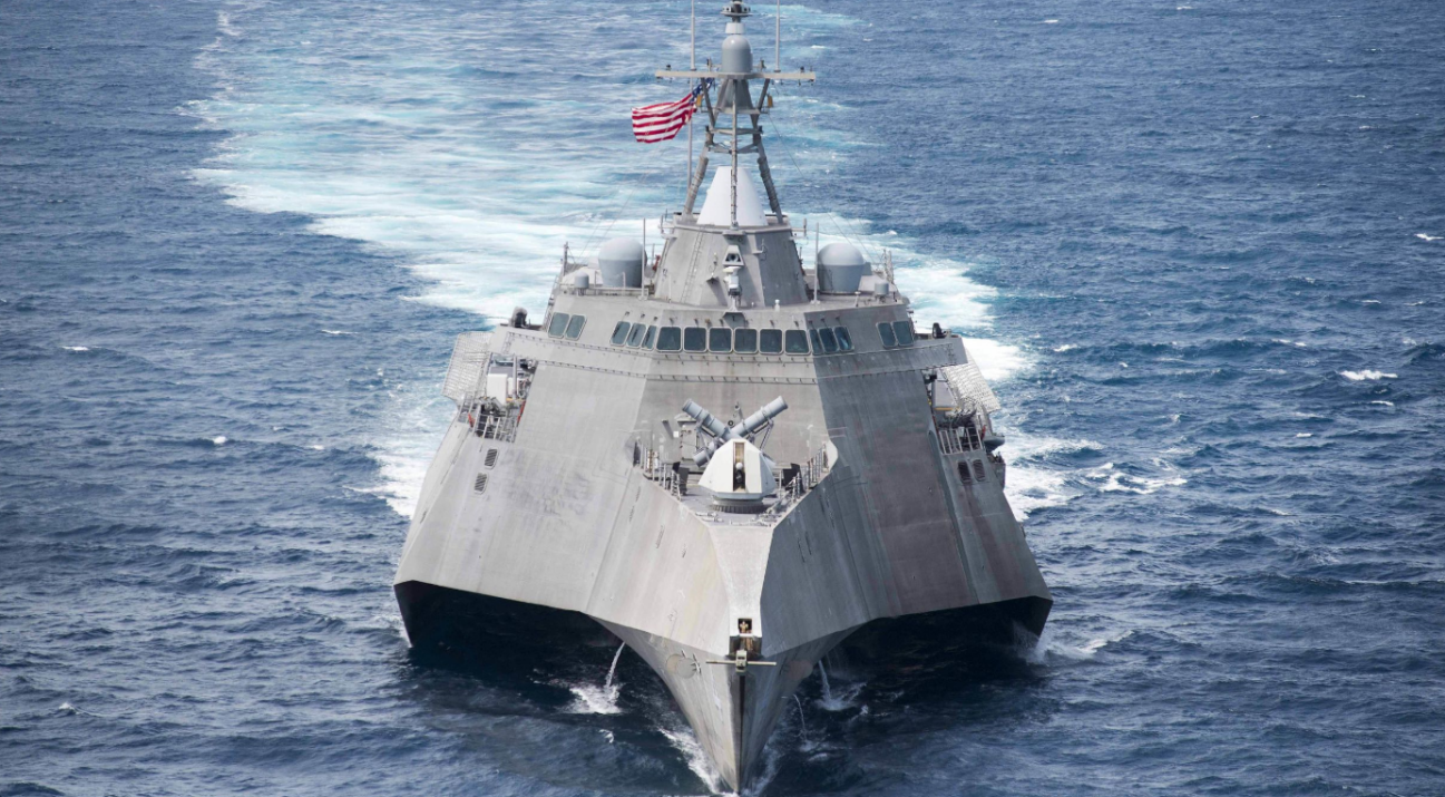 濒海战斗舰是美国新型水面舰艇的一种设计,主要用于靠近海岸区域近距离作战,濒海战斗舰具有速度快、易操控、风险小的特点,大小与护卫舰相仿,比导弹驱逐舰小,具有攻击小型运输舰的能力,但是濒海战斗舰的火力严重不足,甚至不能拿现在舰艇的火力去要求它,那么美国濒海战斗舰在海战中到底是干什么的?作用有点尴尬,因为其火力太弱,只能依靠高航速、作战灵活来充当急先锋马前卒,而美国研制濒海战斗舰的目的竟然也不是针对中俄,而是一些小国家的小型快艇等武器。