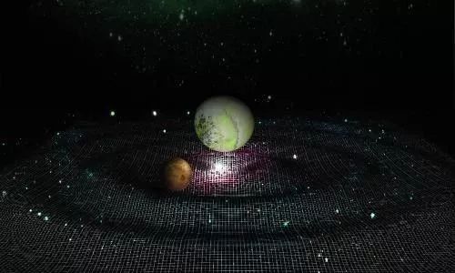 不过,恢复平衡虽然不可能,但我们还是有些机会可以让空间变得更扭曲的。再回到刚才那张紧拉着的网上,此时上面因为放了很多东西而变得往下沉了。此时如果在凹面中放一个小球的话,这个小球便会往下滚,这个凹面就类似于星球的引力范围。