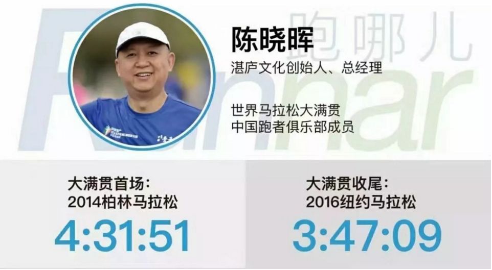 从个人跑者到号召公司上百人开跑,再到担任中国田协马拉松委员会个人委员、首都媒体跑团成员,陈晓晖与湛庐携手联想共同举办跑步运动知识分享会、与《中国马拉松》出版人谭杰一起参加马节目访谈、助力金飞豹的“秘境百马”运动、受奥运冠军之邀担任乳山马拉松配速员……他一直以参赛、参与马拉松文化论坛、撰文等方式推广马拉松文化。