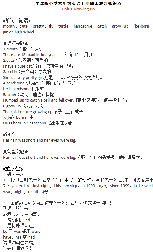 义务教育教科书学习软件 →智乐园-专注中小学教育15年!← 牛津版小学六年级英语上册期末复习知识点