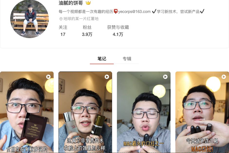 他涉及的领域很广,主要是以分享自己的精致生活为主,但是也会分享一些适合男生的护肤品以彩妆。