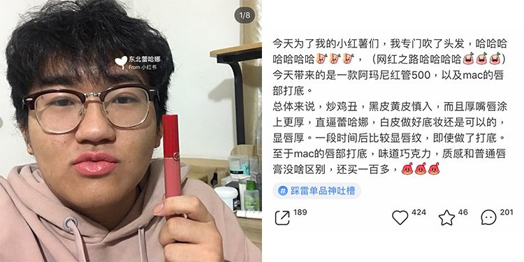 不要以为男人都部分口红色号,他不仅能轻松辨别各种红色,还会示范“厚涂”、“薄涂”等不同效果,甚至还会评价口红的外观质地、使用感受等等,真的是一枚专业的口红试色博主了!