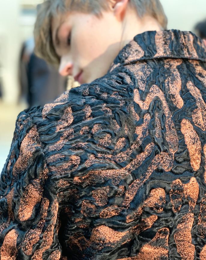 看到最后你还会发现,这次秀上作品的印染颜色也相当考究。
