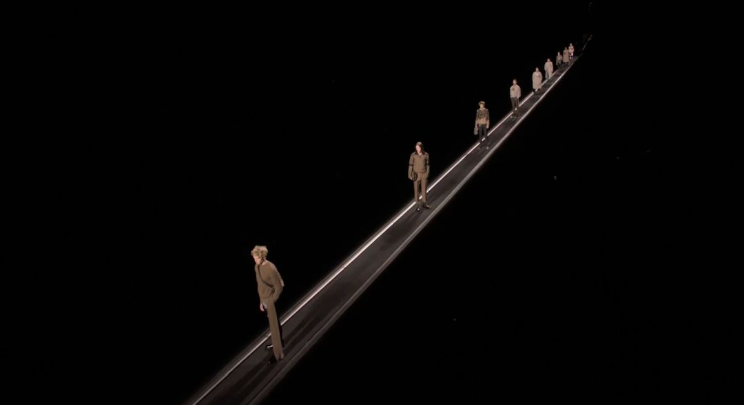 与大家传统想的步行上台的画面不同,这次DIOR MEN秀上模特都是坐76米长的电梯:一步不用动的往前运着走,给人的视觉感受,就像历史大潮一样不可逆转。