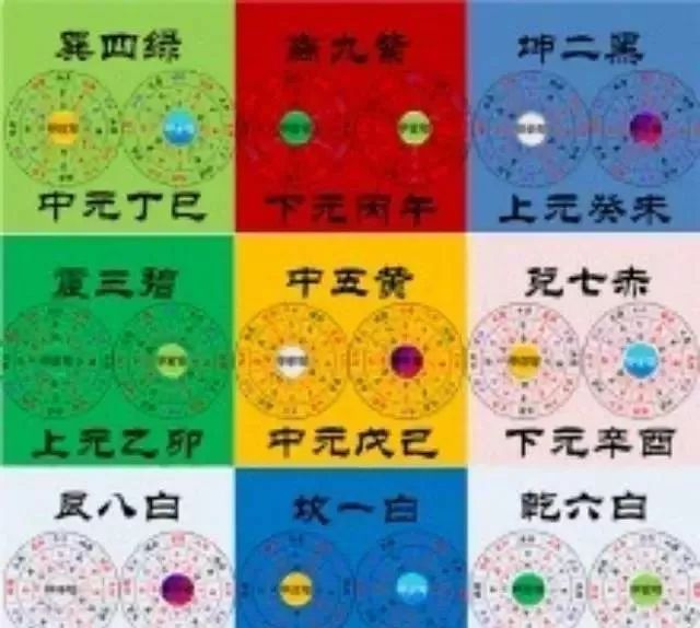 九运:依次为一白水运,二黑土运,三碧木运,四绿木运,五黄土运,六白金运,七赤金运,八白土运,九紫火运。九运也称洛书九运。
