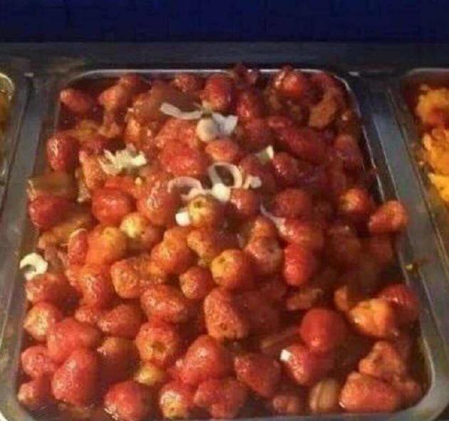 食堂奇葩菜黑暗料理的杰出代表,有幸吃过的同学表示,每一口都是难忘的味蕾体验,水煮土豆太平常了,就需要这么酸酸甜甜的新味蕾体验。能想出草莓烧土豆这等血腥的黑暗料理的人,脑洞肯定非常大,这道菜活脱脱是蔬菜瓜果界的一股清流。
