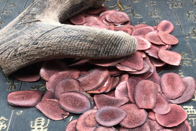 3、割完后用草药敷到鹿茸的根部。不一会就止血了。在合适时间割下的鹿茸蜡头大、茸血足、营养价值和功效都是最好的!鹿茸切片后,不同的等级,适用人群也不同