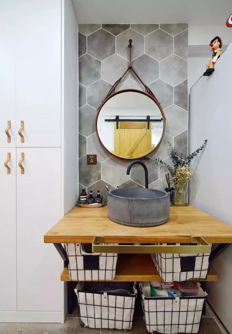 做在走道上的洗手台,这样平时吃完饭也可以直接洗手,不用再进去卫生间,也方便了早晚的洗漱,不用争抢卫生间。