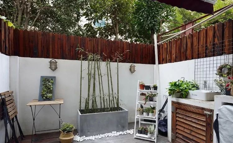 露天的小院子,适合种些花花草草,家具一定要选择防腐木的!!