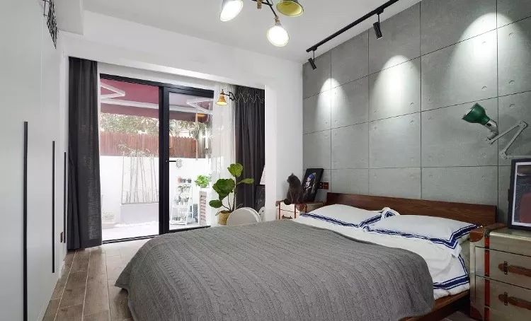 主卧的空间还是比较充足的,毕竟有了个院子,阳台的空间可以并一部分到主卧内,屋外留下一部分方便下雨天晾晒衣服即可。