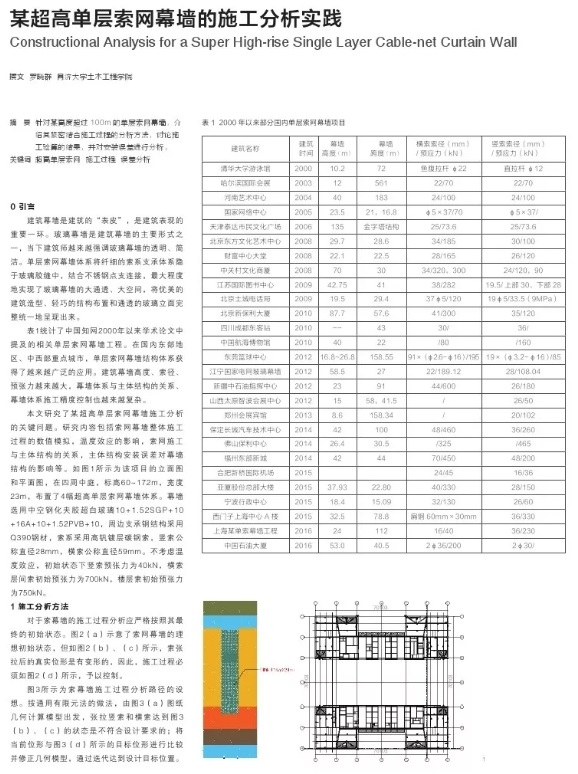 某超高单层索网幕墙的施工分析实践