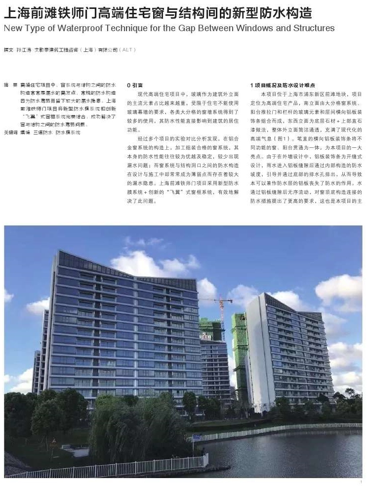 上海前滩铁师门高端住宅窗与结构间的新型防水构造