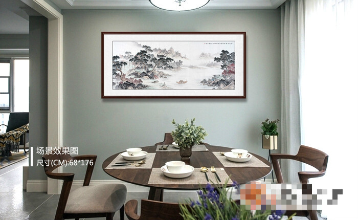 餐厅是一家人聚在一起用餐的地方,是一家人增进感情的地方,也是接待客人的主要场所,因此,餐厅装修绝不能随意,山水画中的斗方山水画,小巧精致,韵味十足,设色典雅,为整幅画面增添别致的韵味,观之流连忘返,品之心情舒畅,乃餐厅挂画的不错选择。