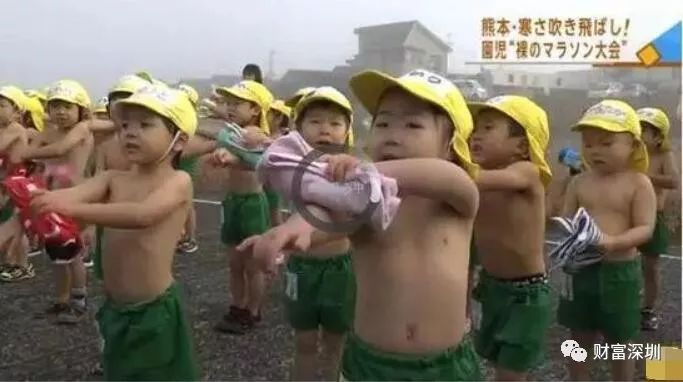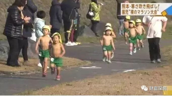 日本对幼儿的教育方式的确与众不同,例如很多幼儿园和小学都会进行“抗冻训练”。 此前有媒体报道了日本熊本县某幼儿园举行的一场跑步比赛:孩子们要在4摄氏度低温中赤裸上身奔跑。有的孩子跌倒后马上爬起来,有的孩子被冻得大哭,还是坚持跑到终点。 如此锻炼与日本传统文化有关,他们认为怕冷的小孩是不强壮的,是弱不禁风的表现。