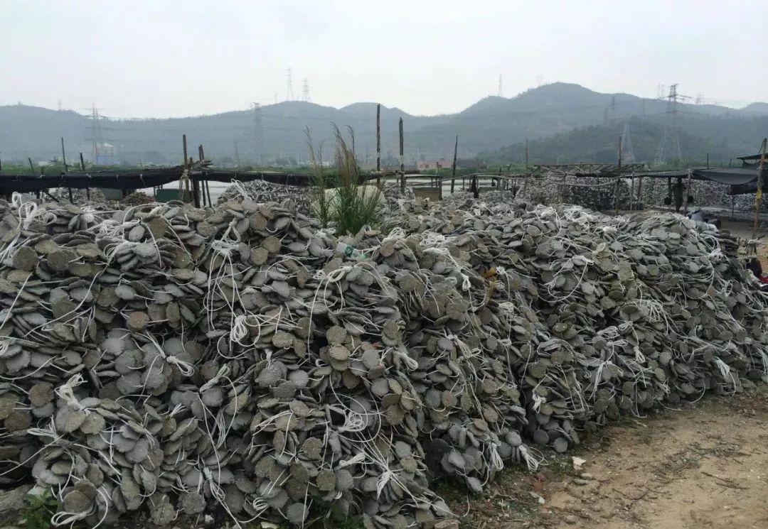 腥味很重,满地满地的生蚝壳堆成了珠江边的一片花白滩,大多都是生蚝上下壳中的下壳,表面层次繁多,凹凸不平,像是一层层叠上去的白纸团。在岸边,就能看见远处一排排浮在水面上的筏排。