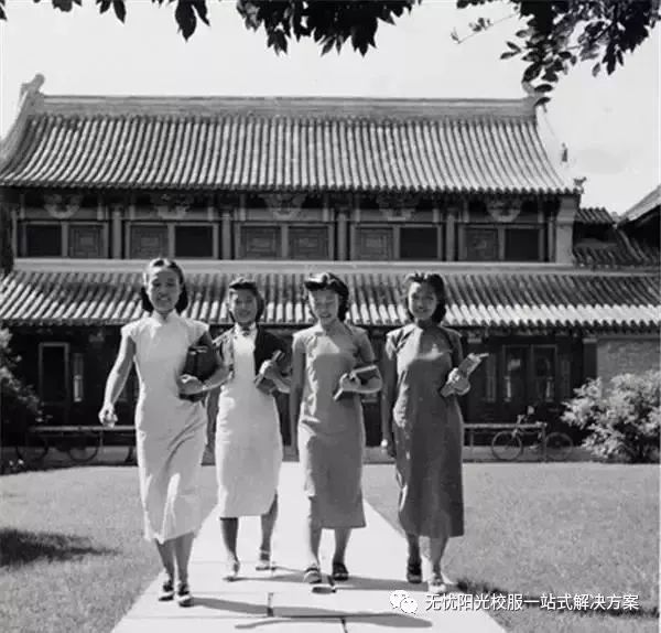 林徽因(右一),她们身上穿的是北京培华女子中学的校服