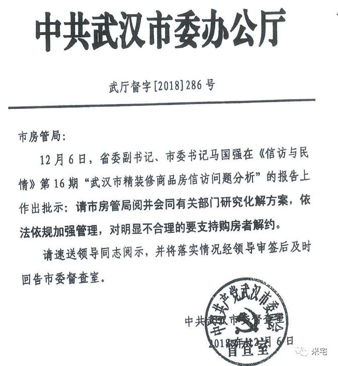 在此之前,2018年12月6日,武汉高层甚至亲自做出了批示,“对明显不合理的要支持购房者解决”。
