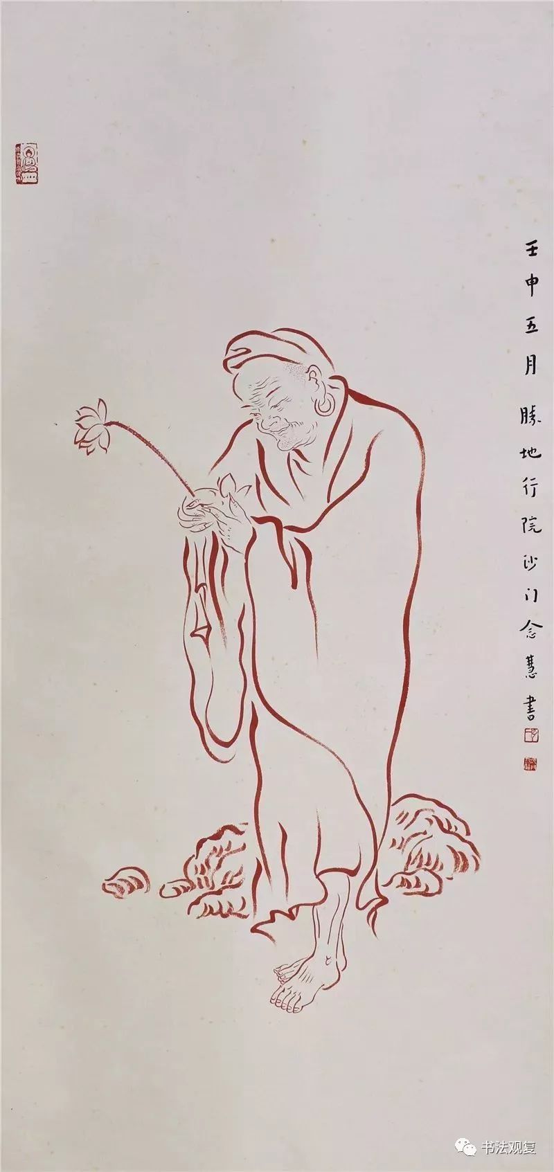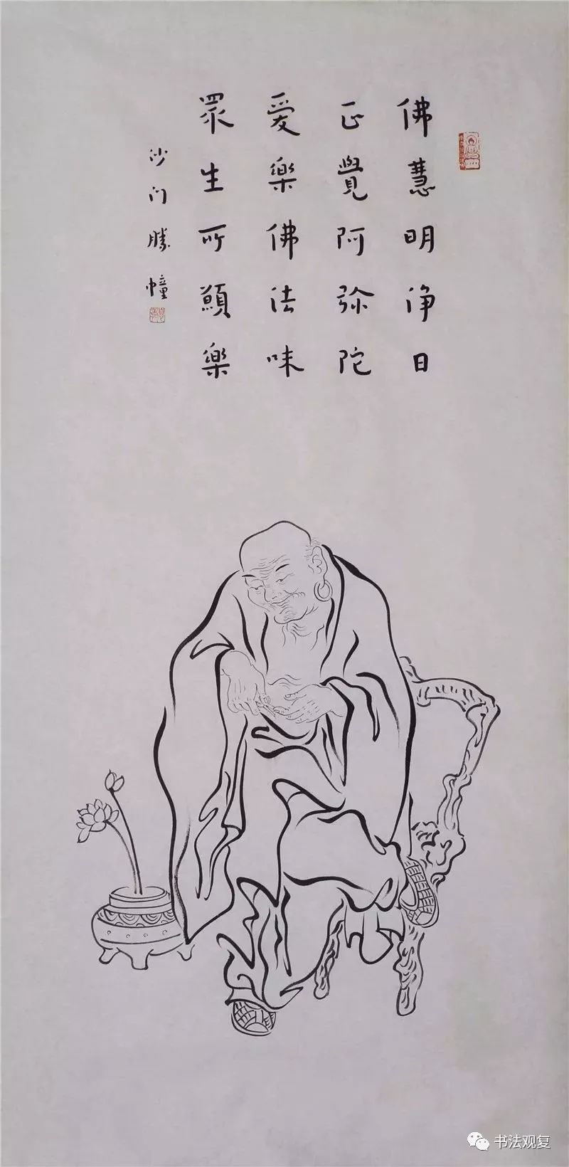 弘一 持莲罗汉 轴 A16404 129×62