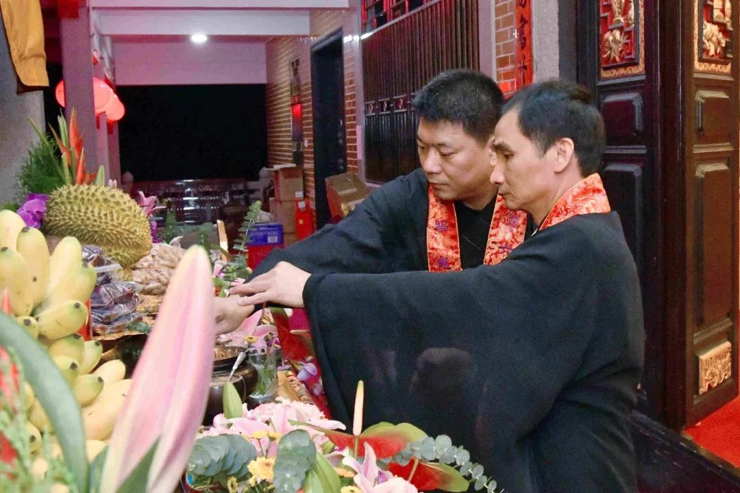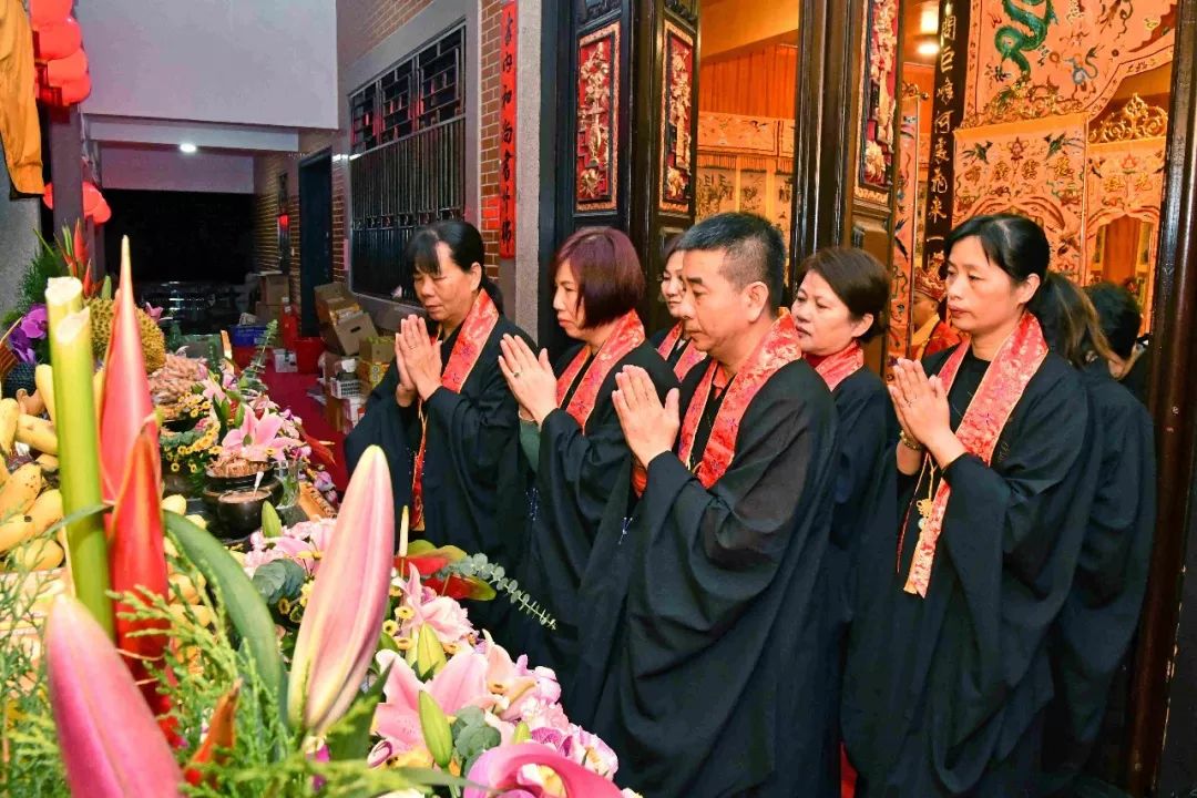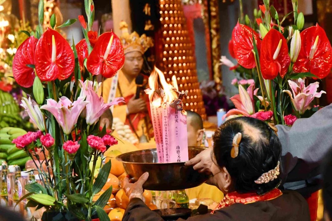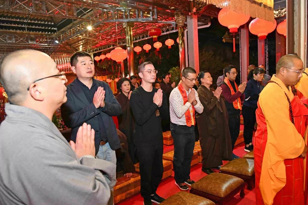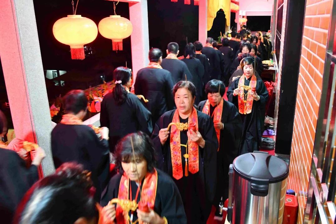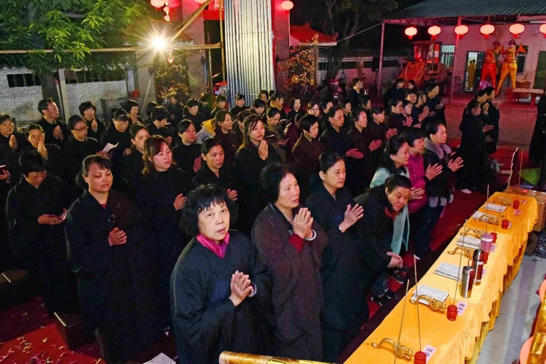 凌晨2时,告赦仪式开始。三位法师领众功德主依次拈香问 讯,至诚礼拜十方法界,恭请捷疾持赦使者携“赦书”、“赦牒”,上启天庭,下通幽冥,陈情法会缘由,望其下释拘紧,让六道中受苦困缚的众生能获赦通行,赴水陆胜会听经闻法,趣入菩提。藉此功德超荐群灵,解离三途之苦。