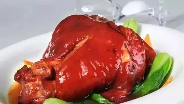 带把肘子是陕西大荔极具地方特色的一道传统名菜,以色、香、味、形俱佳著称。它肘子带骨带蹄,成菜如丘,色泽枣红,如一个把柄,故称“带把肘子”。