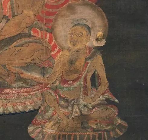 火天是守护东南方之神,为火神及诸持明神仙众之主。火天经常以表情严肃的老人形象呈现,本幅的火天却显得温和而亲切。
