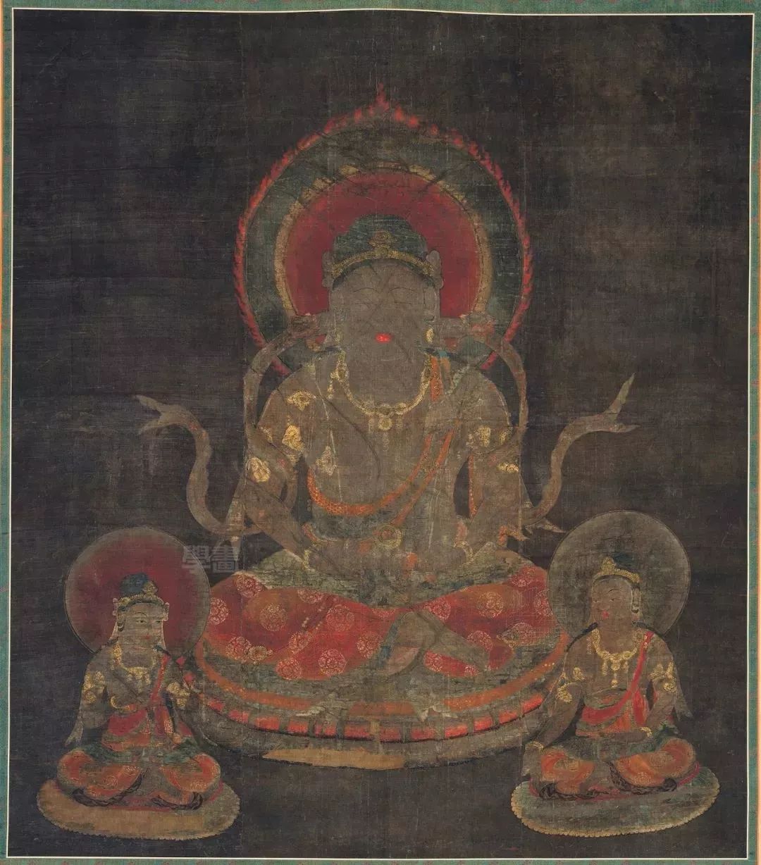 地天象征大地,与梵天呈对比,别名坚牢地神,为地上诸神及树下野沙诸神之主。这幅地天色彩丰富,装饰凝练,乃是院政时期的代表作。