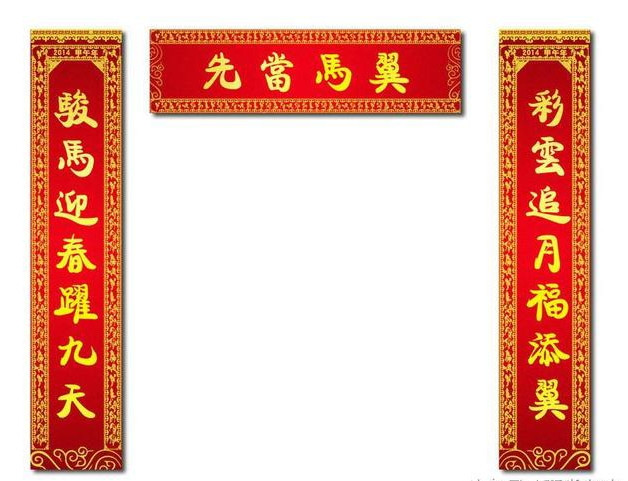 一般认为,古时候的对联,因为是从右向左书写,所以上联在门右边。其实,中国文化是多神崇拜,古人以左为上,成语“无出其右”现在“男左女右”就是证明,从门有神的角度看,我们所谓的右边其实是门的左边。现在人们照集体照,中间位置最尊贵,其次为左;供佛像也一样,这些也都是左为上的证据,不了解这些知识,你就无法贴对春联和门神像。所以,上联要贴在门的左边,横额不能从左到右书写。