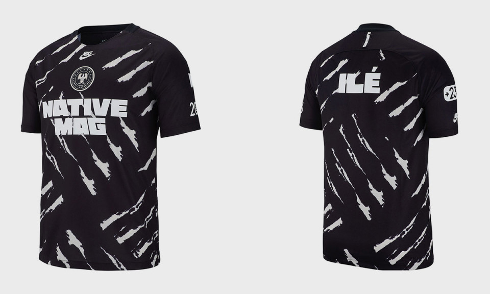 在去年的世界杯比赛上,尼日利亚队是一支很热门的球队。在这个热爱足球的国度,球衣也是尼日利亚人日常穿着的一部分。这次耐克与尼日利亚本地知名文化杂志《The NATIVE》合作,推出一款限定版球衣。球衣从尼日利亚传统服饰 Adire 里取得灵感,以白色沙痕搭配黑色主体的球衣,不禁让人想起在沙地上驰骋的足球小子们。球衣正面印有尼日利亚国家队队徽,耐克标志和代表杂志的“NATIVE MAG” 字样,背面印有 “ILÉ”,这在当地语言中是“家”的意思。穿上这款球衣,也能给尼日利亚人带来“家”一般的亲切感。不知道大家对这款充满人文气息的球衣,作何看法呢?