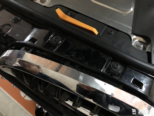 中网一共有六个卡扣,上面三个和容易就松了,下面三个死活弄不下来。可能是因为新车,太紧了,动图塑料又很硬。