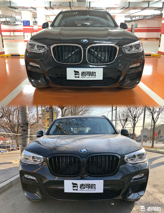 买了宝石青的X3,目的就是想改黑化,其实原厂的车大部分地方已经是黑的了,前脸只有双肾鼻孔的外框是镀铬的,另外里面的鼻毛是银色。首先第一步,就是换这俩。
