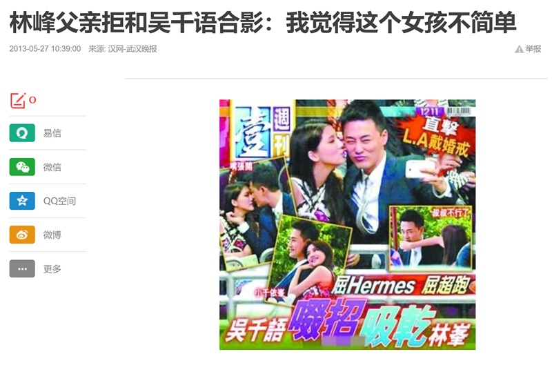 虽然张馨月名气不大,但相比较一直被形容“拜金”的吴千语来说,是要更显得她的珍贵,早在林峰和吴千语热恋的时候,外界就不止一次传出林峰爸爸对吴千语相当不满意,不仅不让吴千语参加家族聚餐,甚至连最基本的合影都不愿意,林爸爸也对记者表达过自己的吴千语的看法:“我觉得这个女孩不简单”。