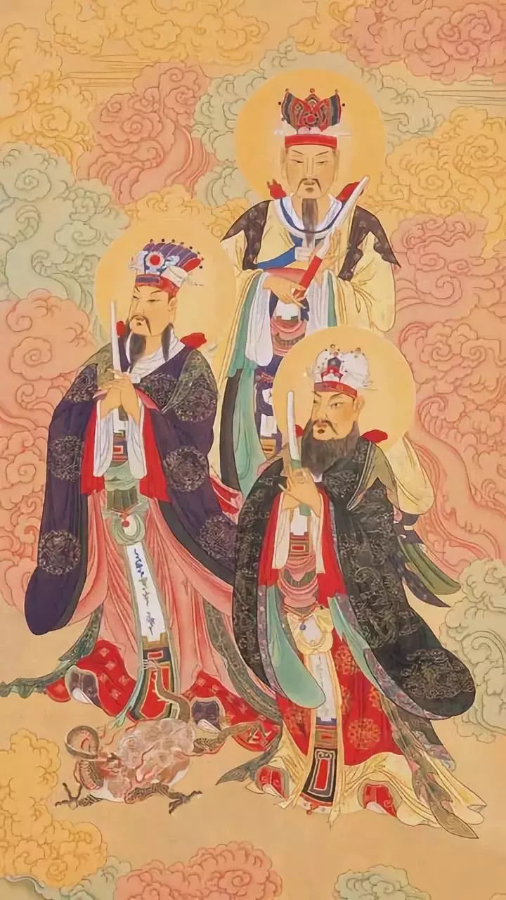 三官大帝宝号:上元一品赐福天官紫微大帝、中元二品赦罪地官清虚大帝、下元三品解厄水官洞阴大帝。
