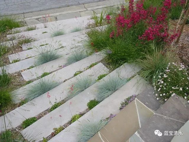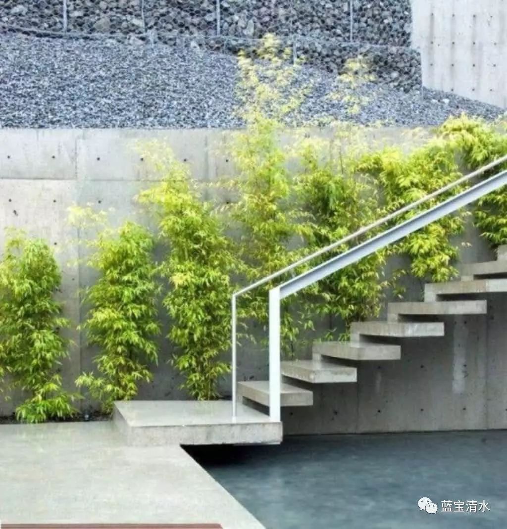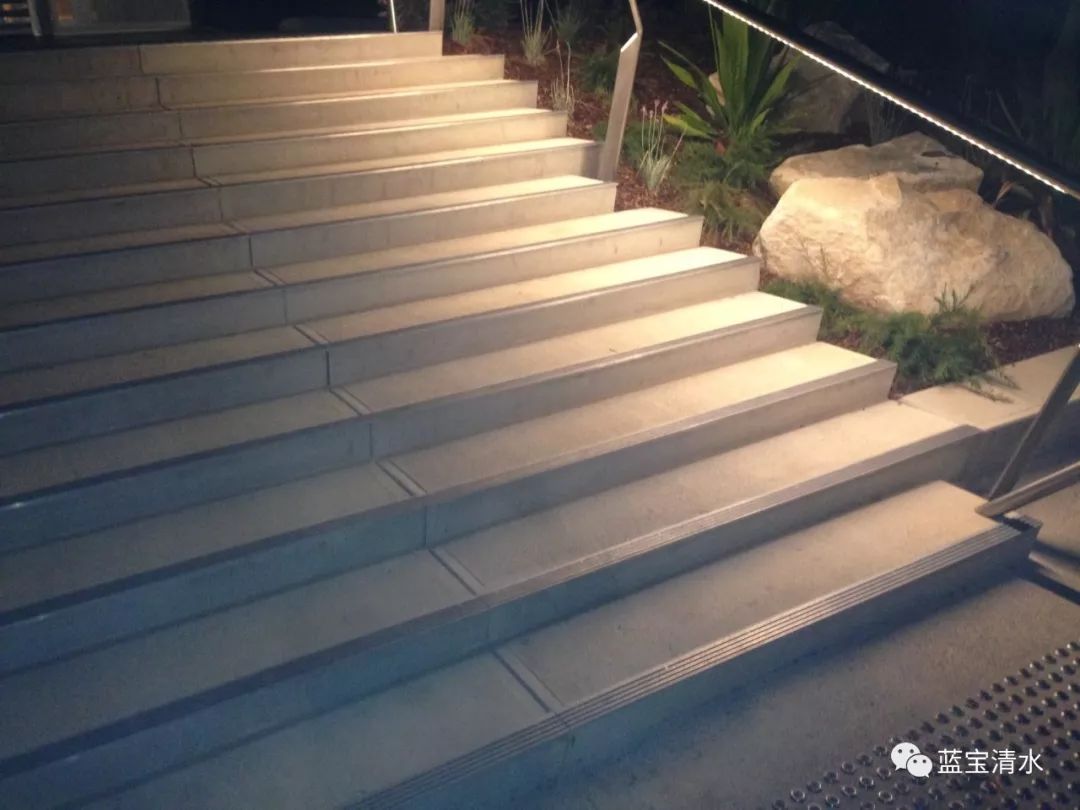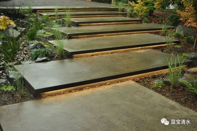 拥有高耐磨及强度的混凝土,在室外中的台阶应用也极为广泛,好维护,易制作且不受造型与场地的限制,在使用中耐久性好,在现代的景观装饰中,清水混凝土的台阶越来越受关注,通过对于造型的塑造,让人空间充满想象力。