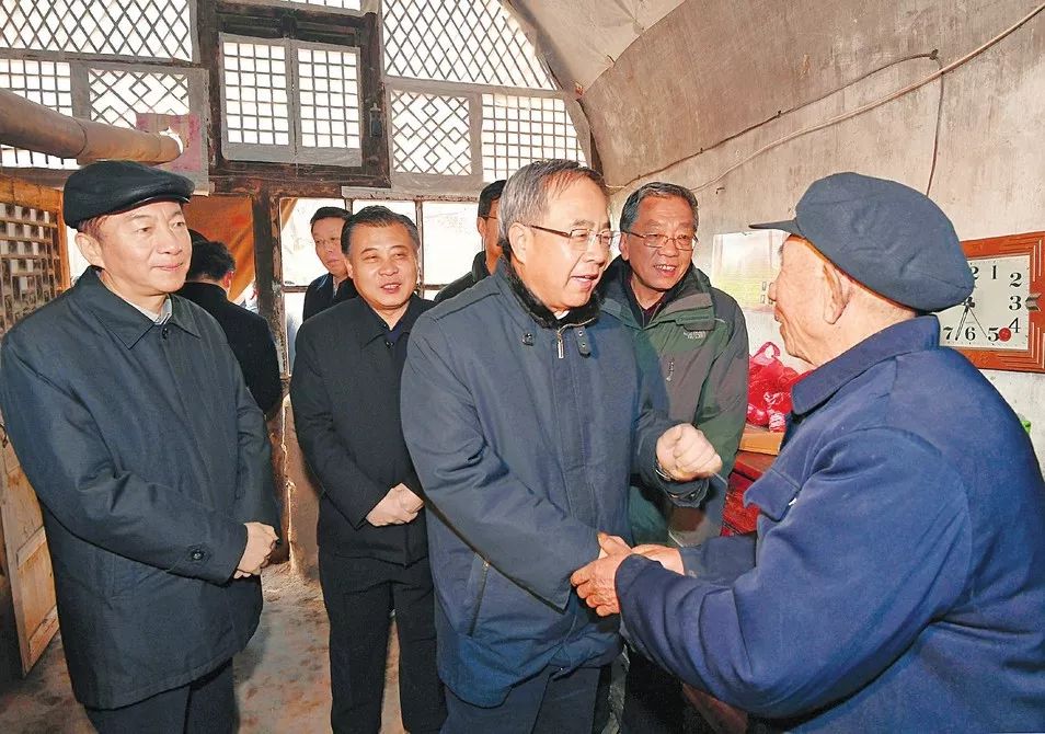 1月27日至28日,中共中央政治局委员、国务院扶贫开发领导小组组长胡春华在吕梁市调研脱贫攻坚工作,看望贫困群众和基层扶贫干部。这是胡春华在兴县前塔上自然村了解五保贫困户潘侯买的生活情况。 山西日报记者李联军摄