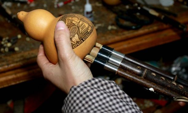 一支专业的葫芦丝需要几十道制作工序,百分之八十是用手工完成。葫芦丝品质越高, 手工制作的程度就越大。从毛料加工打磨、璜片安装调试、再到合成组装定型等,每一道工序都蕴藏着制作者的独特匠心。我们可以把制作过程大致分为毛料加工、璜片安装、组装定型几大环节。