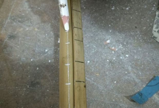 (3)画孔线:根据竹管内径粗细,确定制作乐器的调性,再用固定的尺码画孔线,按孔的位置决定该乐器的音准程度;