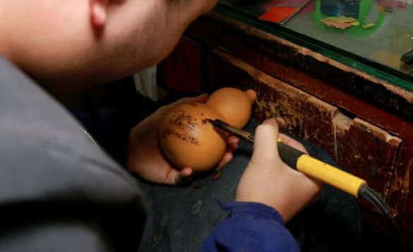 在葫芦上烙画属传统的手工工艺,这门技术对人员要求比较高,绘画的师傅要有深厚的美术功底。