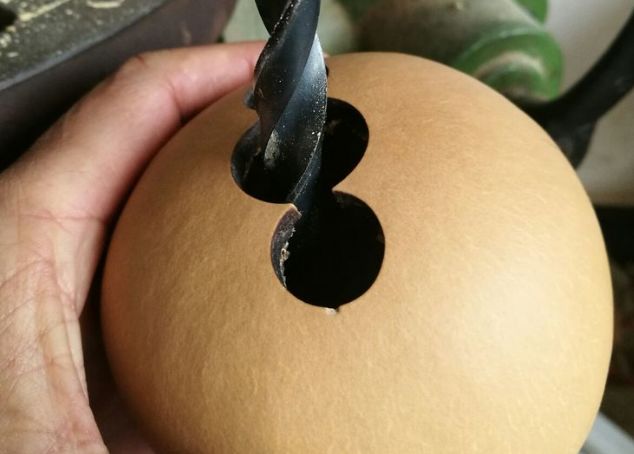 (2)打孔:吹嘴孔和主、附管孔共四个(吹嘴孔与主管孔尽量打在中轴线上);找准中心点。