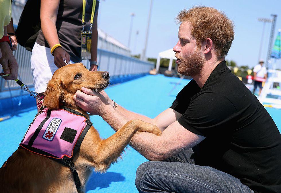 红发与红发间的惺惺相惜?哈里王子与医疗犬Jasmine,在2016年Invictus Games运动会相见欢。