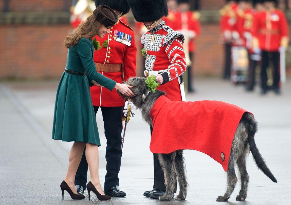 王室成员在圣派翠克节上为爱尔兰卫队(The Irish Guards)配戴三叶草是王室习俗之一, 连警卫犬也获得这项殊荣。