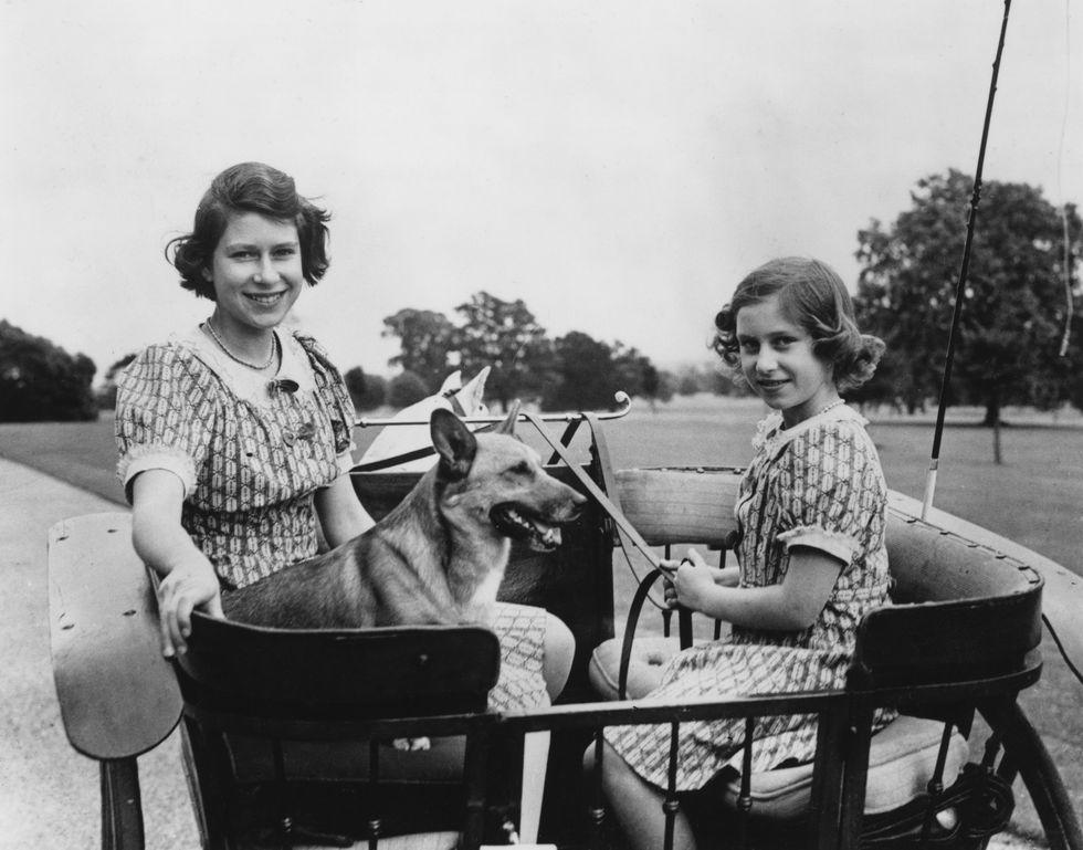 1940年,还是公主的伊丽莎白与妹妹玛格丽特,当然,还有爱狗。