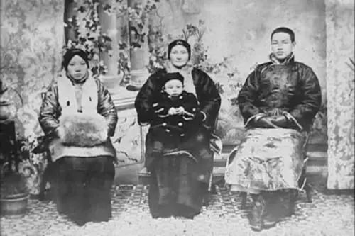 左一妻子毛福梅,中间母亲王彩玉,儿子蒋经国,右一蒋介石。