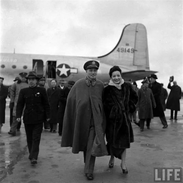 走下飞机的蒋介石夫妇