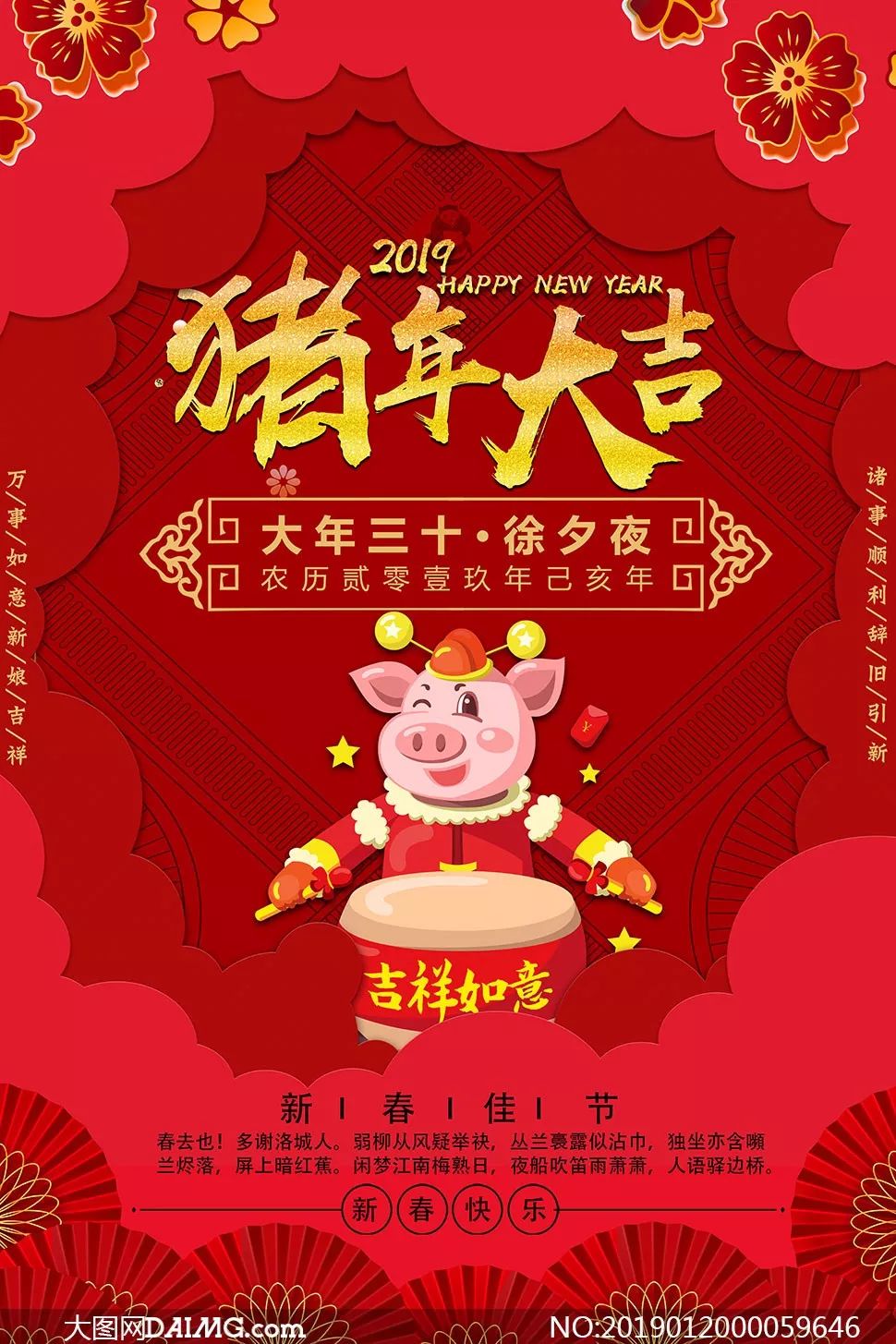 2、金猪贺岁,大地回春,花开富贵,万紫千红,祥云瑞气,载歌载舞,送故迎新,祥和美满,幸福绵长,身体健康,安乐吉祥,万事顺利。