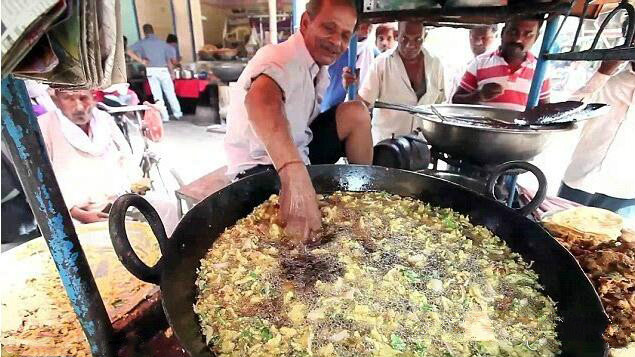 我们先不谈这种印度油条的外观,其生产过程有些难以忍受,他们直接就将面粉倒入油锅后,接着就伸手进锅不停的抓动,粗暴的制作方式看起来一点都不讲究,看看中国的油条都是用筷子啊,但是从另一个角度看,这些制作油条的小贩也值得钦佩的,他们豪不在乎这沸腾的油锅,为了家庭生计,这样的铁手也不是普通人一天能练就的!